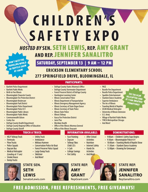 WHEATON – State Representative Amy Grant (R-Wheaton), in partnership with State Representative Jennifer Sanalitro (R-Hanover Park) and State Senator Seth Lewis (R-Bartlett), is hosting a Children’s Safety Expo on Saturday,…